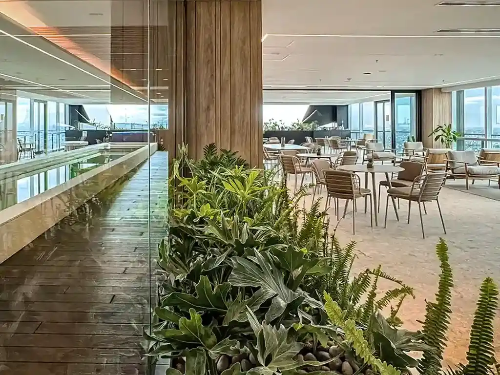 Desde el lobby de acceso hasta las áreas comunes en los niveles superiores, se aplicó un nuevo lenguaje de diseño que potencia la entrada de luz natural, la apertura visual hacia el entorno urbano y la calidez de sus acabados. El resultado es una atmósfera de sofisticación relajada que responde a las demandas actuales de un estilo de vida cosmopolita, donde la arquitectura no es solo un contenedor de actividades, sino un motor de experiencias sensoriales que elevan la calidad de vida de sus usuarios finales en cada rincón del complejo.