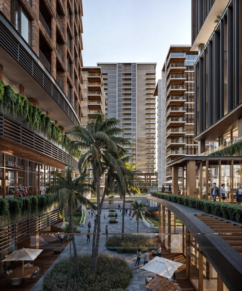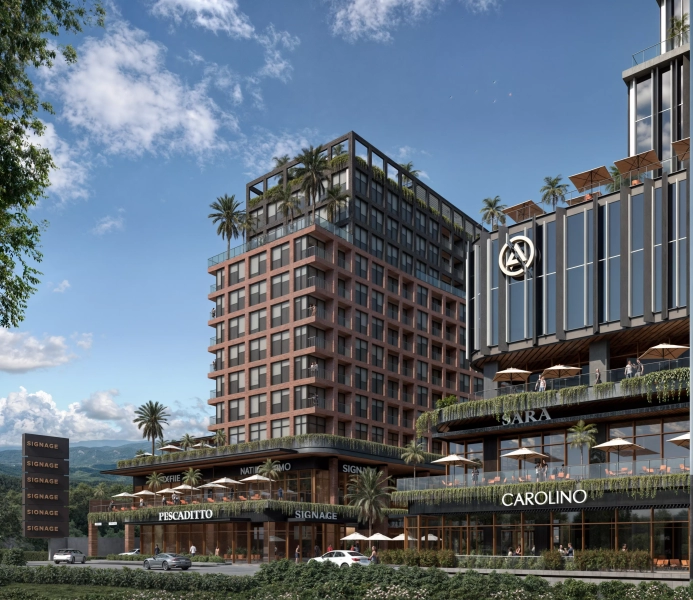 - La primera fase, estratégicamente ubicada en la parte frontal del proyecto, da un cálido recibimiento con un espacio comercial de dos niveles. Con una presencia impactante hacia la vialidad principal, este podio comercial alberga boutiques, restaurantes y servicios que brindan una experiencia única a los visitantes. Sobre este podio, se elevan majestuosas una torre residencial y una torre de oficinas, creando una sinergia entre estilos de vida y entornos laborales.