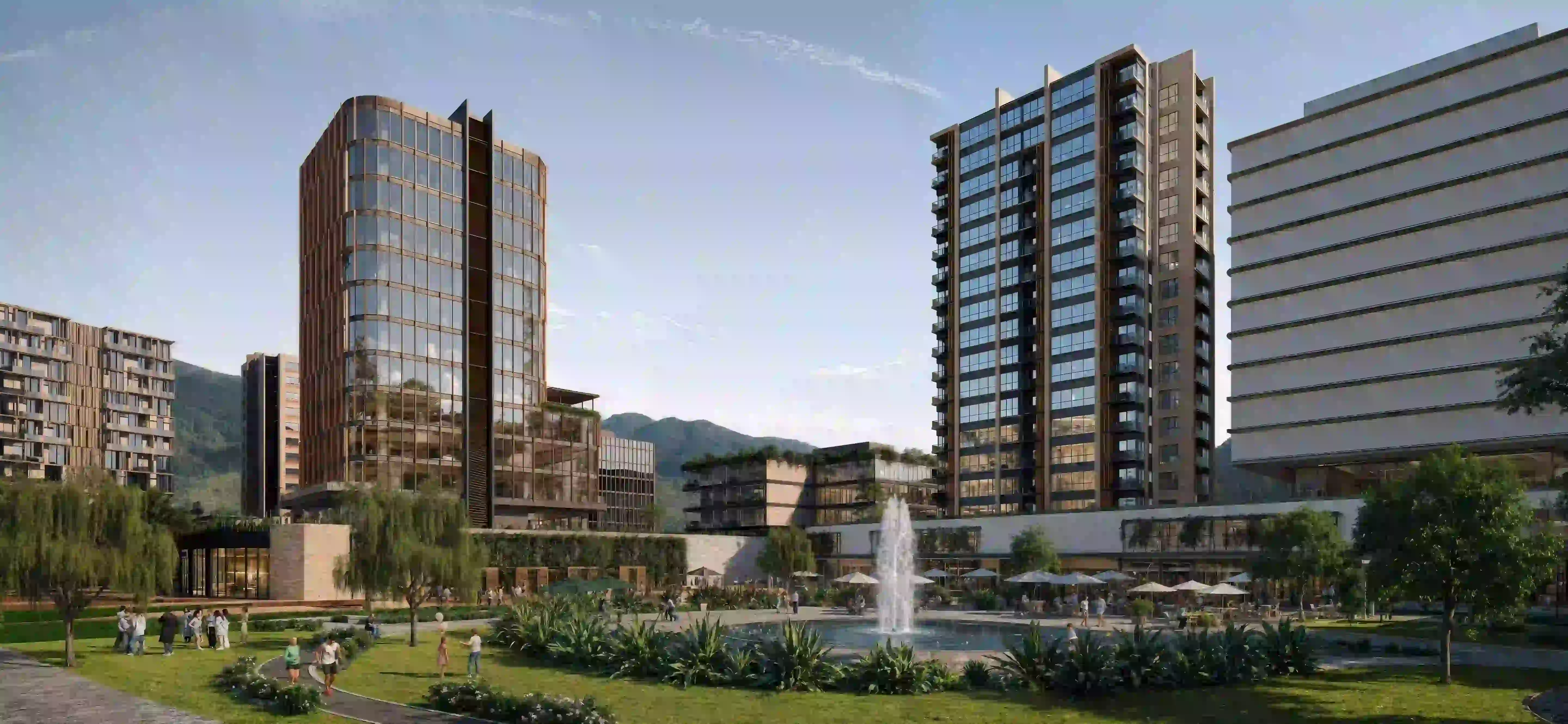 El diseño de las unidades residenciales fomenta una conexión orgánica con el exterior, permitiendo que el habitante disfrute de la frescura del aire y la vista hacia los parques centrales. La disposición de estos edificios rodea plazas privadas y áreas de descanso exclusivas, garantizando la privacidad sin aislarse del entorno vibrante del masterplan. La materialidad noble y los acabados de alta calidad aseguran una durabilidad excepcional, mientras que el diseño biofílico promueve un entorno de tranquilidad y serenidad, transformando el concepto de vivienda colectiva en un refugio personal profundamente ligado a la naturaleza y el bienestar cotidiano.