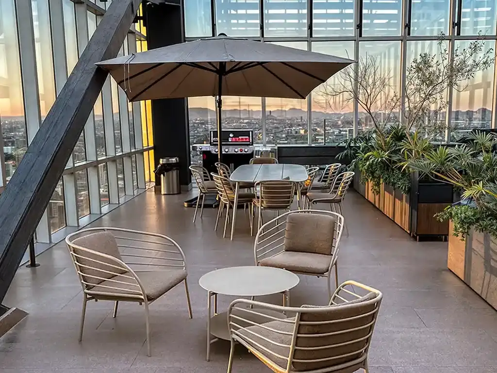 Desde el lobby de acceso hasta las áreas comunes en los niveles superiores, se aplicó un nuevo lenguaje de diseño que potencia la entrada de luz natural, la apertura visual hacia el entorno urbano y la calidez de sus acabados. El resultado es una atmósfera de sofisticación relajada que responde a las demandas actuales de un estilo de vida cosmopolita, donde la arquitectura no es solo un contenedor de actividades, sino un motor de experiencias sensoriales que elevan la calidad de vida de sus usuarios finales en cada rincón del complejo.
